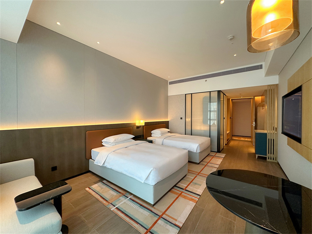 2024年9月22日,由开云电竞装饰承接的南宁五象万怡酒店正式开门纳客。万怡酒店是万豪国际集团(Marriott International)旗下,以高效办公和愉悦休闲的环境设计而闻名的商务酒店品牌,遍布全球35个国家和地区,拥有超过850家分店,开业40多年以来,万怡酒店始终致力于为客人打造卓越的住宿体验。